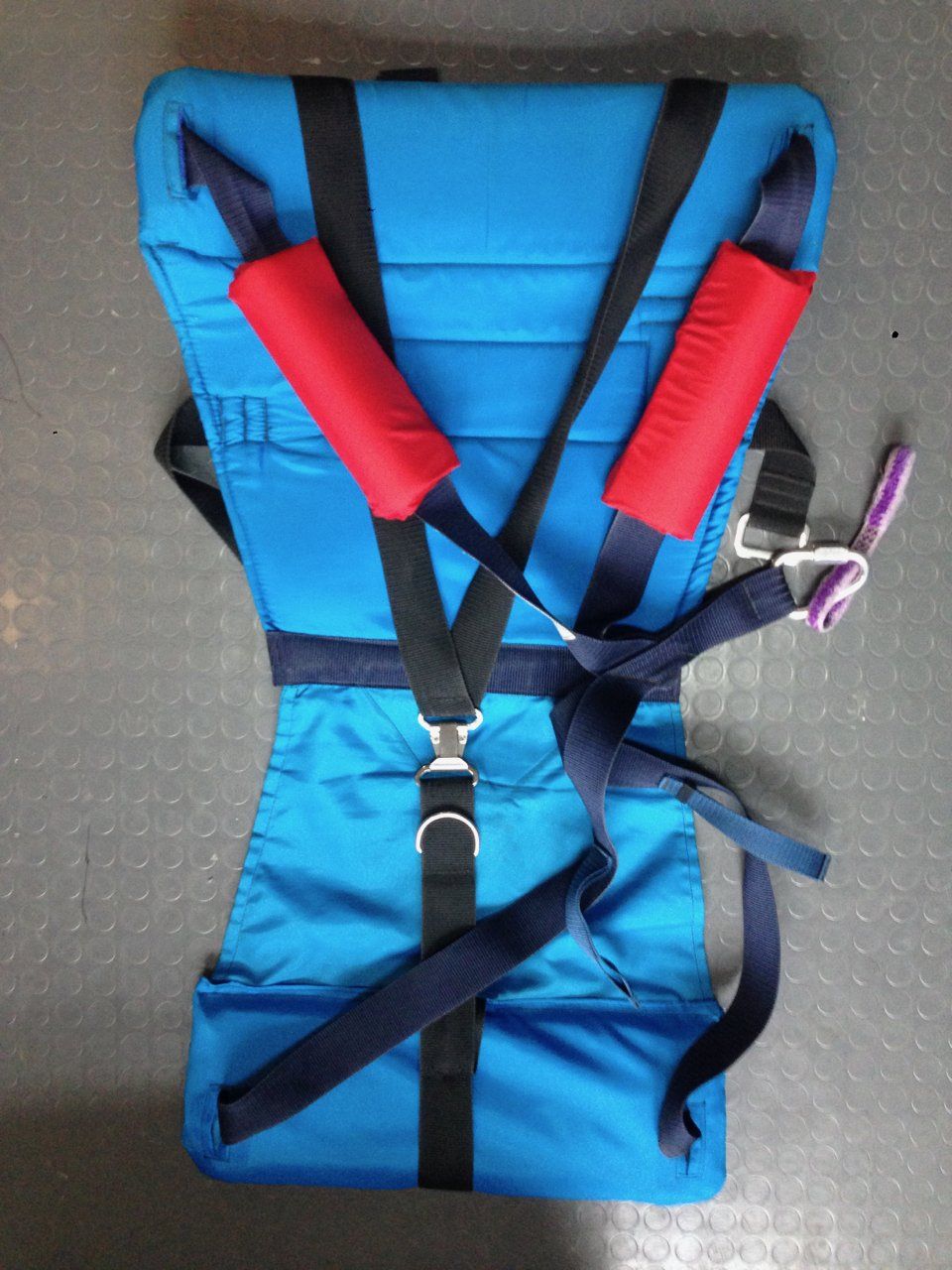 The CFF is an invention by MONTIC designed to ensure a controlled free fall to untrained persons. It consists of a comfortable shaped back rest, padded with foam, as well as leg rest. These two sections of the harness have rigid forms built into the harness. The middle section is only foam and can be adjusted in lenght to fit any size person. (Children to Adults).